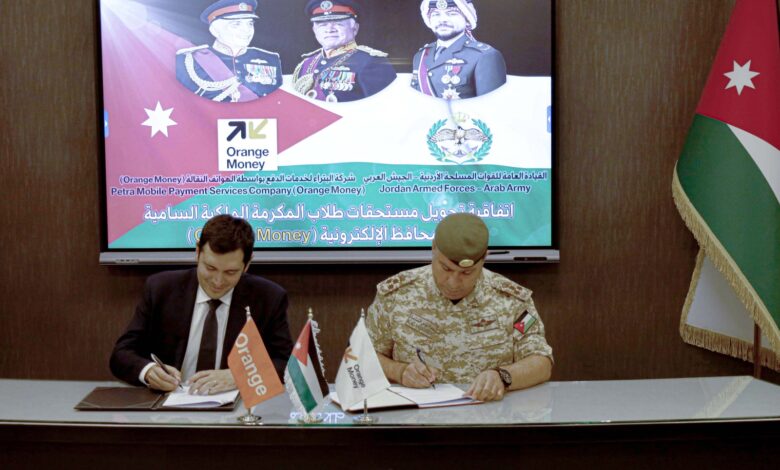 ووقع الاتفاقية عن القوات المسلحة مدير الدائرة المالية العميد حمزة الكساسبة، وعن شركة “أورنج الأردن” الرئيس التنفيذي ورئيس مجلس إدارة (Orange Money) المهندس فيليب منصور.