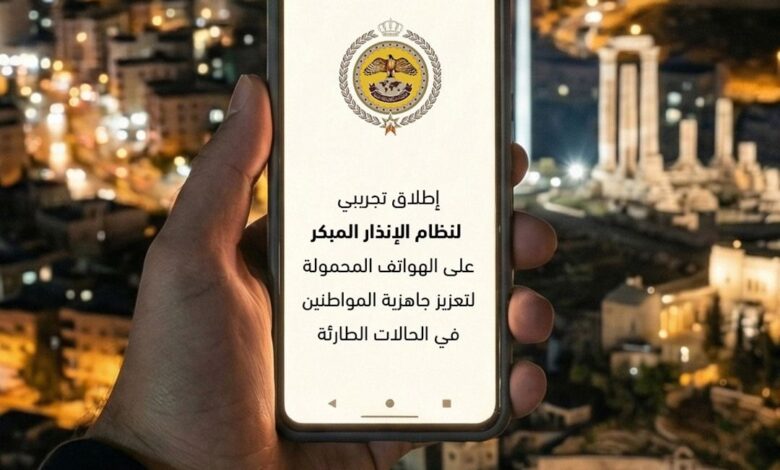 تطلق وزارة الاقتصاد الرقمي والريادة، بالتعاون مع المركز الوطني للأمن وإدارة الأزمات، تجريبياً نظام الإنذار المبكر على الهواتف المحمولة، وذلك في إطار الجهود الوطنية لتعزيز الجاهزية والاستجابة للحالات الطارئة.