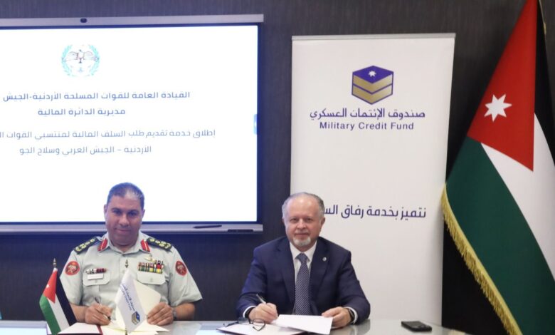 أعلنت القيادة العامة للقوات المسلحة الأردنية – الجيش العربي/ مديرية الدائرة المالية، عن إطلاق خدمة تقديم السلف المالية إلكترونيا لمنتسبي القوات المسلحة الأردنية وسلاح الجو الملكي، عبر صندوق الائتمان العسكري، وذلك في إطار جهودها المستمرة لتحديث وتطوير الخدمات المالية المقدّمة للعسكريين.