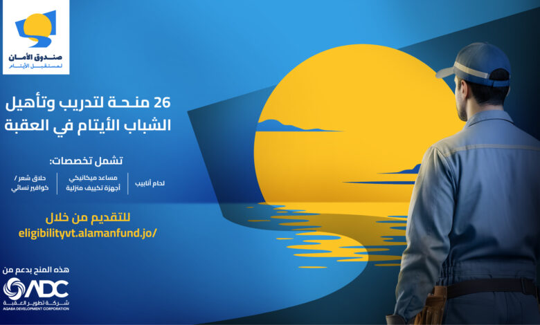 ضمن خطته الاستراتيجية للتوسع في مختلف محافظات المملكة وتعزيز أثره الاجتماعي من خلال شمول عدد أكبر من الشباب الأيتام فوق سن الـ18 في برامجه التعليمية، أعلن صندوق الامان لمستقبل الايتام عن فتح باب التقدّم لـ26 منحة تدريب مهني بدعم من شركة تطوير العقبة ADC ضمن برنامج “منح تدريب وتأهيل الشباب الأيتام في العقبة” الذي تم إطلاقه خلال العام 2025 والذي يهدف إلى تمكين الشباب الأيتام من خلال تزويدهم بفرص الالتحاق ببرامج تدريب مهني في تخصصات حيوية مطلوبة في سوق العمل، بما يسهّل عليهم الحصول على فرص عمل حقيقية تضمن لهم مستقبلًا مهنيًا مستقرًا ومستدامًا.