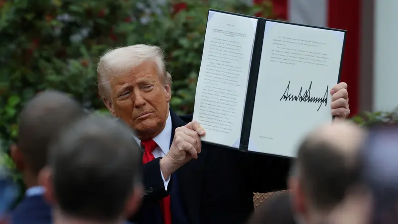 التاسع من أبريل/ نيسان – علّق ترامب لمدة 90 يومًا معظم الرسوم الجمركية التي فرضها على دول بعينها ودخلت حيز التنفيذ في غضون أقل من 24 ساعة، عقب اضطرابات اجتاحت الأسواق المالية وتسببت في فقد البورصات لتريليونات الدولارات. وظلّت الرسوم الجمركية الشاملة البالغة 10% سارية على جميع الواردات تقريبًا إلى الولايات المتحدة.