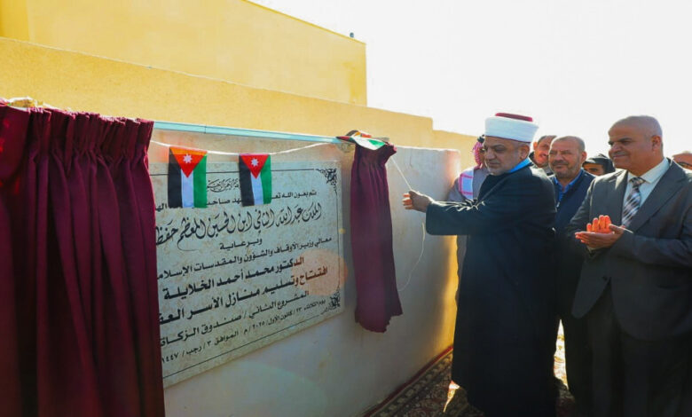 سلم وزير الأوقاف والشؤون والمقدسات الإسلامية، محمد الخلايلة، اليوم الثلاثاء، مشروع مساكن الأسر العفيفة الممول من صندوق الزكاة في منطقة المكيفتة بلواء البادية الشمالية.