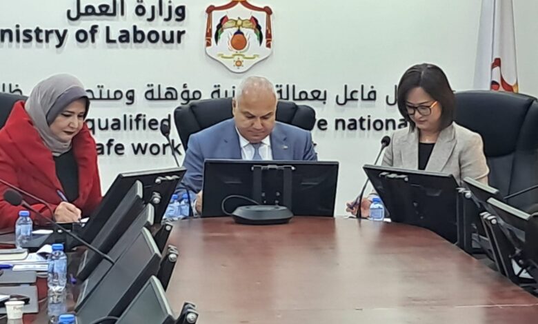 ووقع الاتفاقية وزير العمل الدكتور خالد البكار، ورئيس هيئة المديرين لشركة “ريتش باين انترناشيونال جروب” لصناعة الألبسة وو تسنج، ورئيسة لجنة بلدية قضاء رحاب لينا الزعبي، بحضور أمين عام الوزارة الدكتور عبد الحليم دوجان.