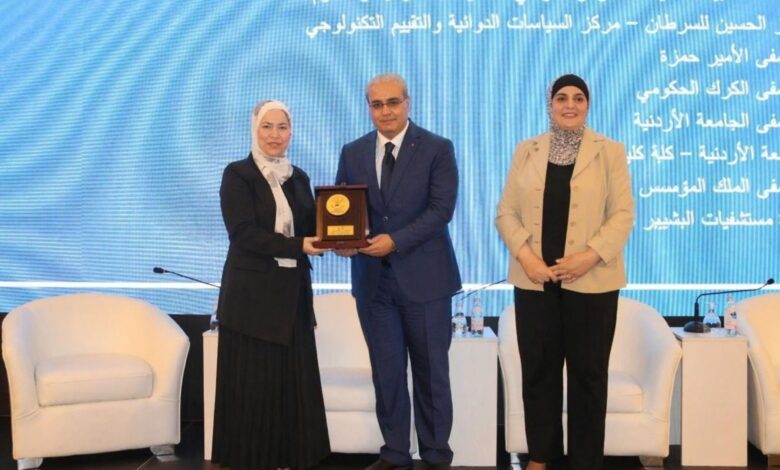 وكرم الدكتور البدور خلال الحفل ضابط ارتباط مركز اليقظة الدوائية لإقليم الشمال في مستشفى الملك المؤسس عبد الله الجامعي الدكتورة الصيدلانية أسماء الغنيمات.