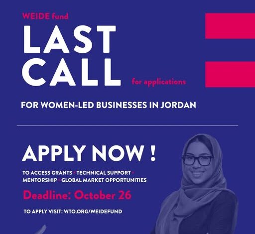 وأكدت المديرة التنفيذية للمؤسسة بالوكالة، دانا الزعبي، في بيان اليوم أهمية هذه الفرصة النوعية التي تتيحها منظمة التجارة العالمية (WTO) والمركز الدولي للتجارة (ITC) بالشراكة مع “جيدكو”، بهدف تمكين رائدات الأعمال الأردنيات من التوسّع في التجارة الإلكترونية والتصدير الرقمي، مشيرةً إلى أن الأردن من بين أربع دول فقط عالميًا تم اختيارها لتطبيق هذا البرنامج الرائد.