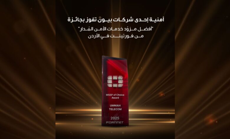 أعلنت أمنية، إحدى شركات Beyon، المزود الرائد لحلول التكنولوجيا الرقمية والمعلوماتية في الأردن، عن حصولها على جائزة أفضل مزود خدمات الأمن المُدار (MSSP) لعام 2025 في الأردنِ من شركة فورتينت العالمية.