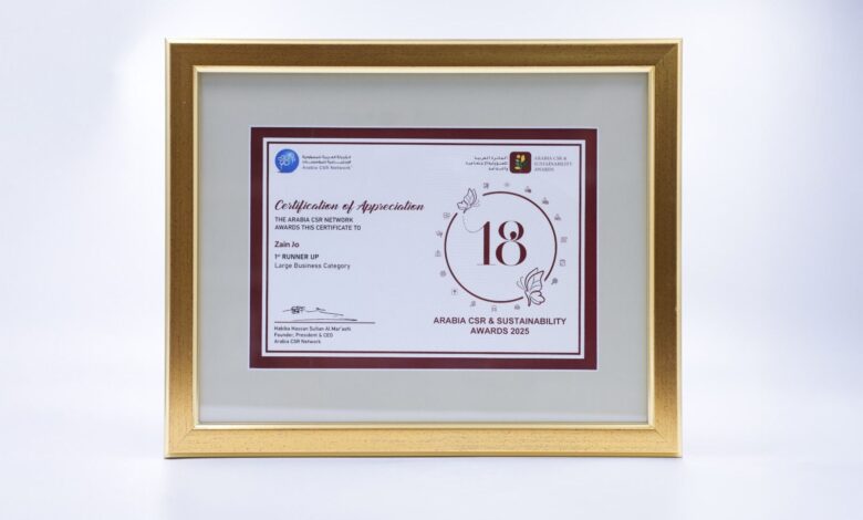 زين الأردن تحصد جائزة الاستدامة والمسؤولية المجتمعية العربية لعام 2025