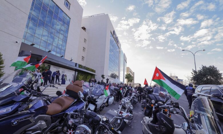 وشارك في المسيرة التي انطلقت صباح اليوم الجمعة مئات الدراجات النارية في موكب احتفالي مهيب تجسدت فيه مشاعر الولاء الفخر والاعتزاز بجلالة الملك، وجابت المسيرة عدداً من شوارع العاصمة عمّان وصولاً إلى الساحة الهاشمية في منطقة وسط البلد، حيث استُكملت الاحتفالات بمعزوفات لموسيقات الأمن العام مع أجمل الألحان الوطنية المميزة التي تغنّت بعيد ميلاد قائد الوطن الميمون.