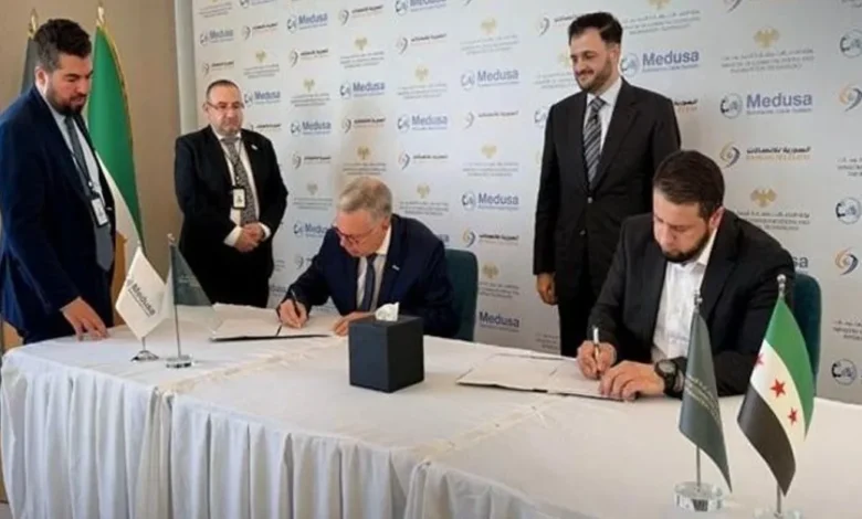 وأكدت القناة الإخبارية السورية الرسمية، اليوم  أن الاتفاقية وُقعت في محافظة طرطوس بحضور وزير الاتصالات عبد السلام هيكل، وممثل شركة “ميدوسا” نورمان إلبي، إلى جانب مسؤولين من محافظتي اللاذقية وطرطوس.