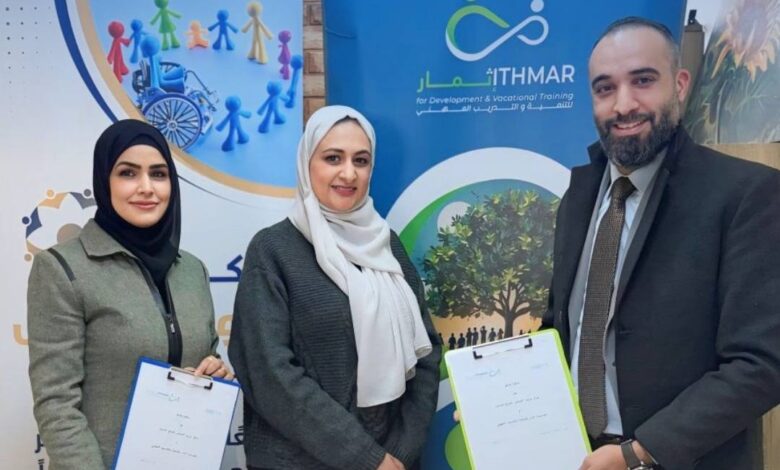 في خطوة تعكس ايمان الطرفين باهمية الشراكات الهادفة الى تعزيز الدمج الشامل ، وقّع مركز ورود الشمس للدمج الشامل اليوم الاربعاء مذكرة تفاهم مع مؤسسة إثمار للتنمية والتدريب المهني.