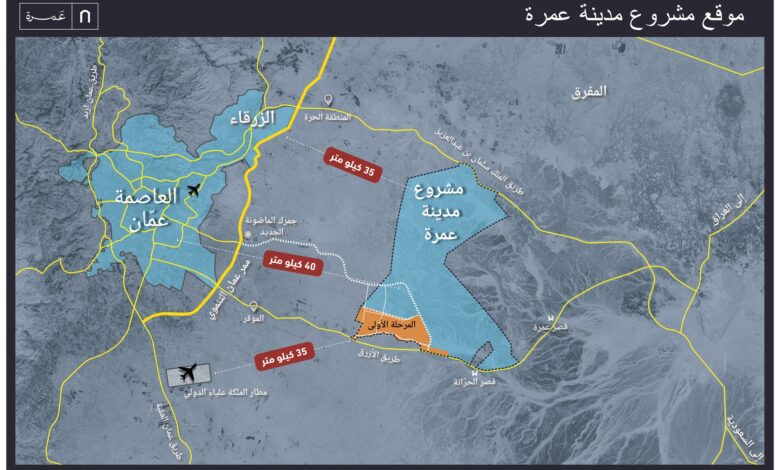 دخل مشروع مدينة عمرة مراحل تنفيذية متقدمة، تحت متابعة مباشرة من جلالة الملك عبدالله الثاني، مع المضي قدما في إجراءات طرح عطاءات إعداد الدراسات والتصاميم الهندسية ووثائق العطاءات لبعض المشاريع.