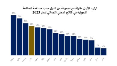 الأردن الأول عربيا بمساهمة الصناعات التحويلية بالناتج المحلي